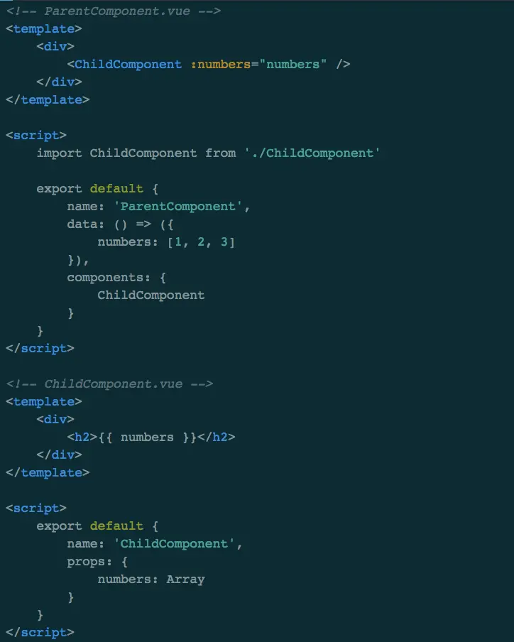 ParentComponent组件把numbers数组作为同名的props传递给ChildComponent。然后ChildComponent组件进行渲染。