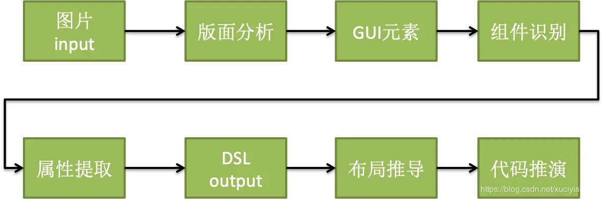 1.通过机器视觉技术,从视觉稿提取GUI元素2.通过深度学习技术,识别GUI元素类型3.通过递归神经网络技术,生成DSL4.通过语法树模板匹配,生成flutter代码