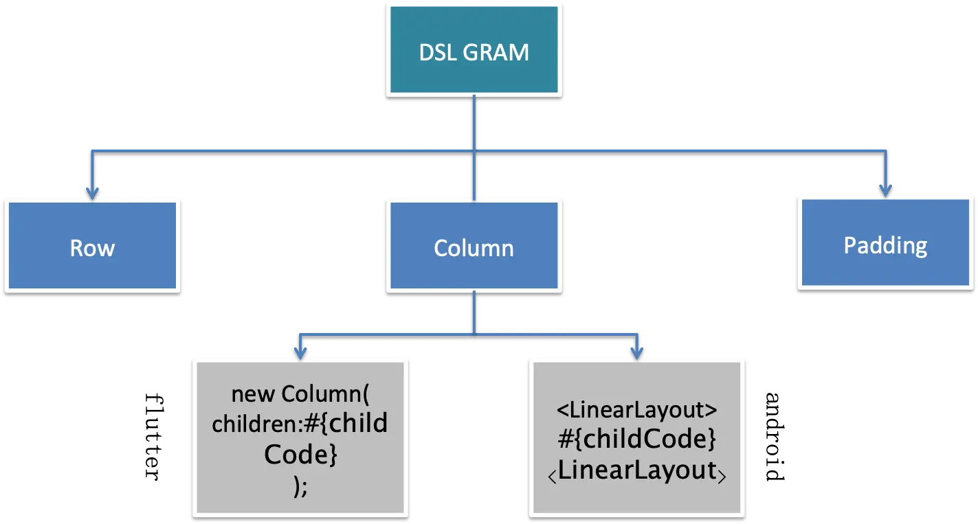我们将UI2CODE生成的DSL TREE进行代码模板化匹配,代码模板的内容由资深的flutter技术专家来定义,它代表目前我们发现的最优代码实现方案。