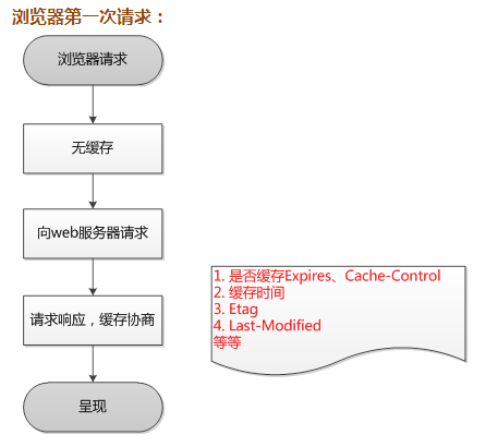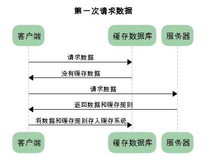浏览器第一次请求数据时,服务器会将缓存标识与数据一起返回给客户端,客户端将二者备份至缓存数据库中。
