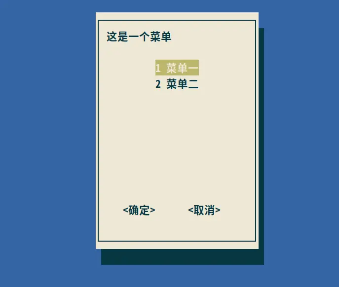 whiptail --menu 这是一个菜单 15 30 2 1 菜单一 2 菜单二