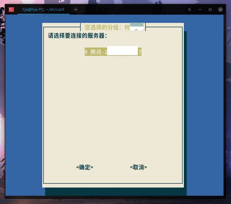 choose=$(whiptail --title "您选择的分组:$key" --menu "请选择要连接的服务器:" 20 50 8 $menu 3>&1 1>&2 2>&3)