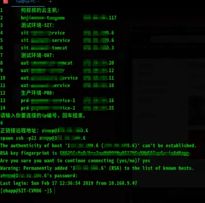 #用户再次选择后,取到其中的 ip 用户名 密码,最后链接ssh就好了