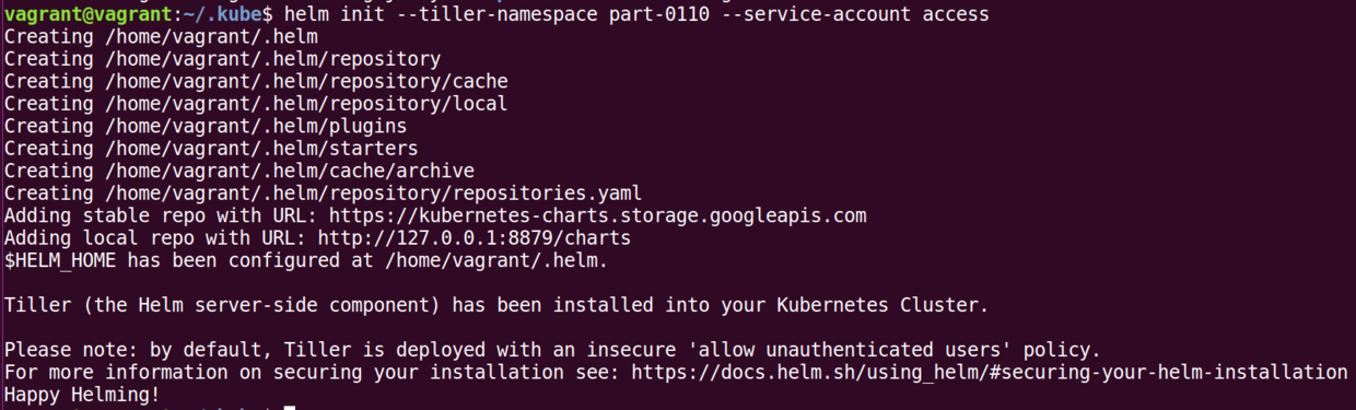 $HELM_HOME has been configured at /home/vagrant/.helm.