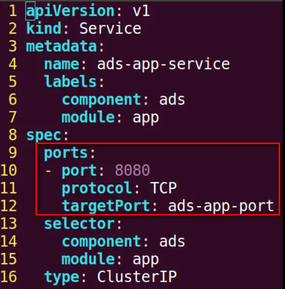 创建一个名为ads-app-service的服务: