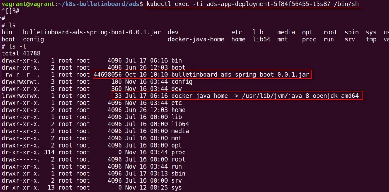 进入deployment对应的pod,可以查看到java应用对应的jar文件和JDK环境。