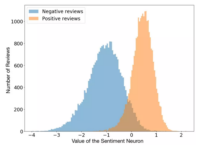 令人惊奇的是,情感神经元在无人监督的语言建模任务中自然而然地出现。该网络经过训练可以预测下一步的工作,我们在任务中没有任何地方要求网络预测情绪。 也许情绪是一个非常有用的概念,网络自然而然的发明它是为了更好地完成语言建模,which is我们原本交给他的任务。