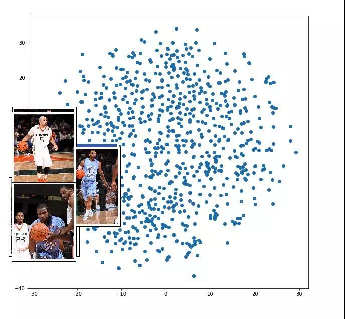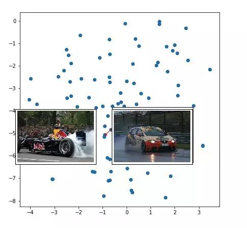 如果单词的representation将相似的单词聚集在一起,那么图像的representation又该如何操作呢。 我将相同的t-SNE技术应用于图像representation (在标题解码器的第一步中作为输入的300维张量)。