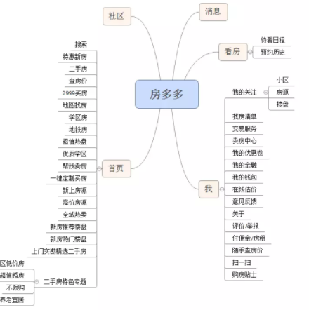 2.房多多:选择新房-信息页-选择最近开盘-楼盘户型图列表-选择某楼盘-基础信息-滑动查看楼盘、户型、评价、周边、关注、咨询。