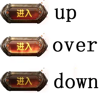 首先,从定义三个按钮状态的三个图像开始。三个图像分别是 up.png,over.png 和 down.png 。然后将这三个图像做成纹理贴图集 ,你可以使用 Texture Packer 这个工具来制作。
