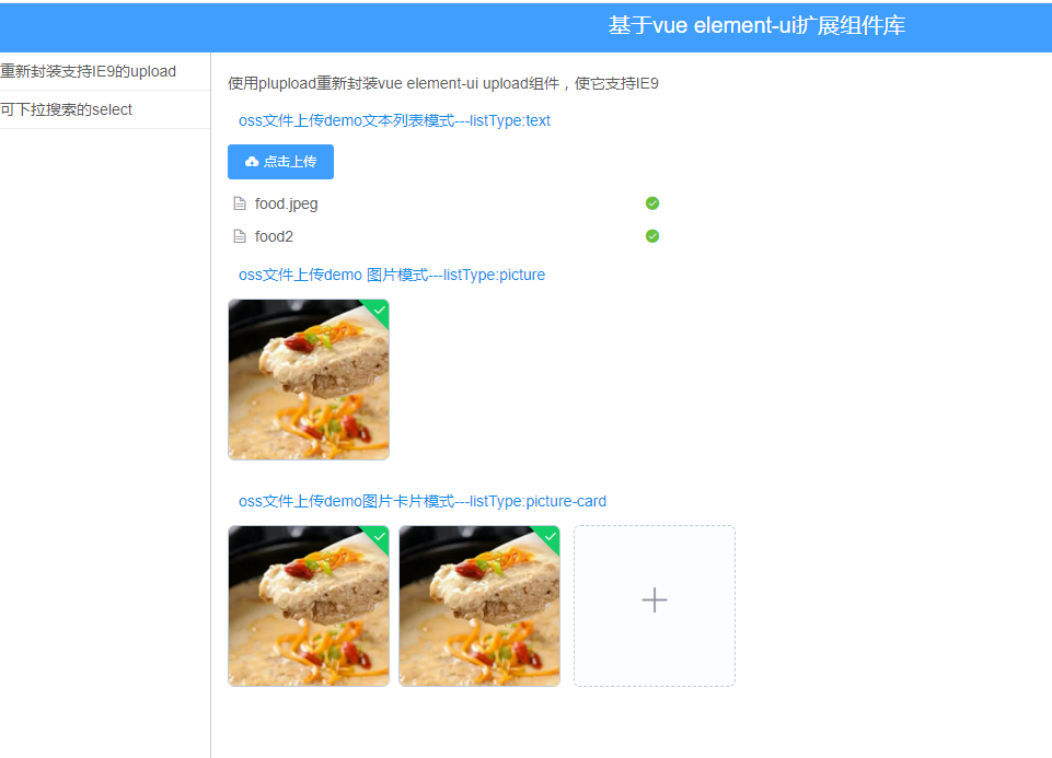 因为element-ui 提供的upload组件不支持IE9,但是编者的项目需要支持到IE9(万马奔腾) 没办法,只能自己封装一个,利用第三方的plupload库进行封装 plupload官网
