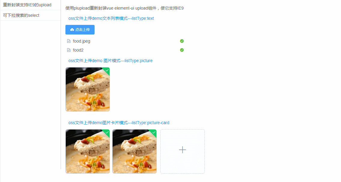 组件路径:src\components\base\uploadPlus.vue 示例文件路径:src\exmple\upload.vue plupload库位置:static\pupload