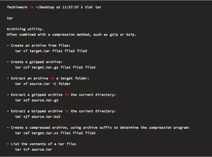 tldr是什么?它的GitHub页翻译是 “一个简洁的社区驱动的帮助手册”,这是对它最好的解释,根据二八原则给出命令的常用场景示例,简单易读,来自五湖四海的朋友都可以向Github上这个命令库提交内容,它完全是由社区驱动的。