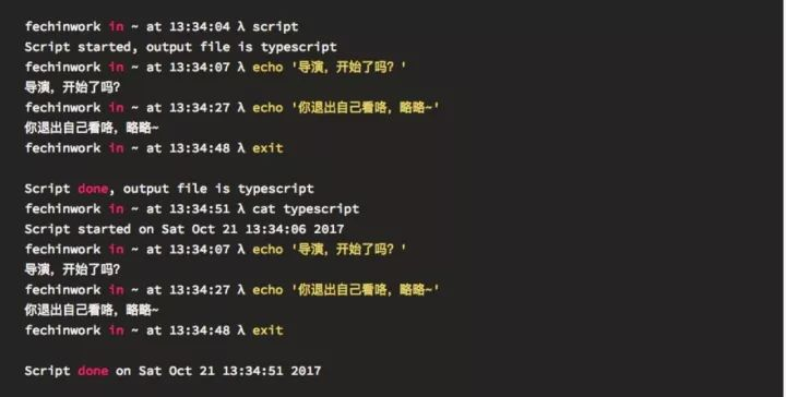 用script启动它,此时它已经开始记录。完事后用exit退出记录,默认生成了一个叫“typescript”的文件。