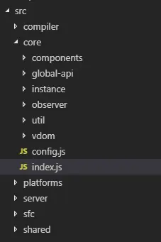 在github上将Vue的源码clone到本地,我们可以看到,Vue的源码目录结构主要如下: