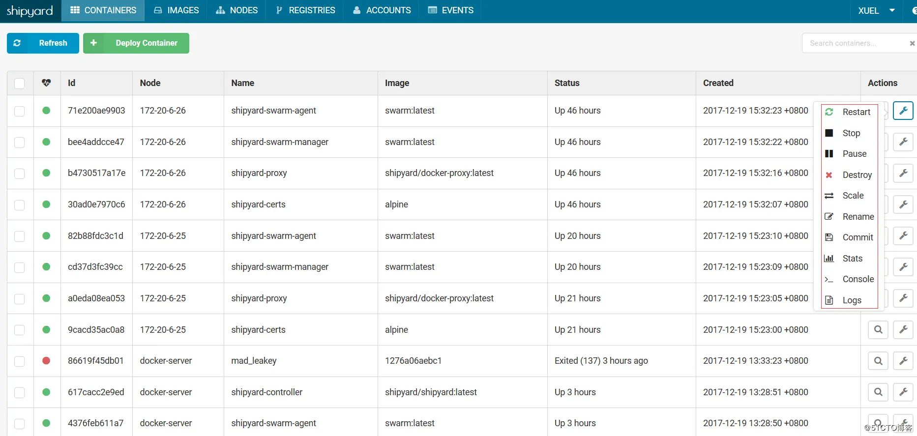 上面命令中的172.20.6.20是shipyard的部署机的ip;