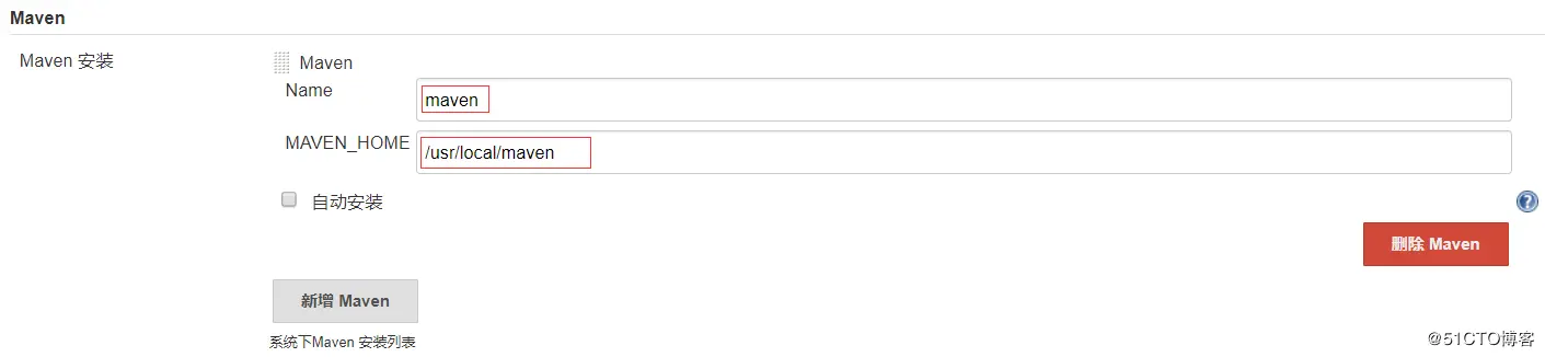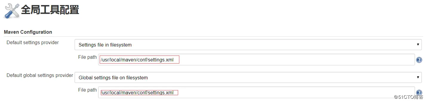 针对之前手动安装的maven需要在web界面配置进行结合。 系统管理---全局工具配置(Maven Configuration)配置: