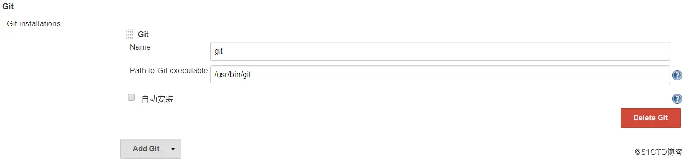 手动安装的git,web界面只需添加具体可执行路径即可