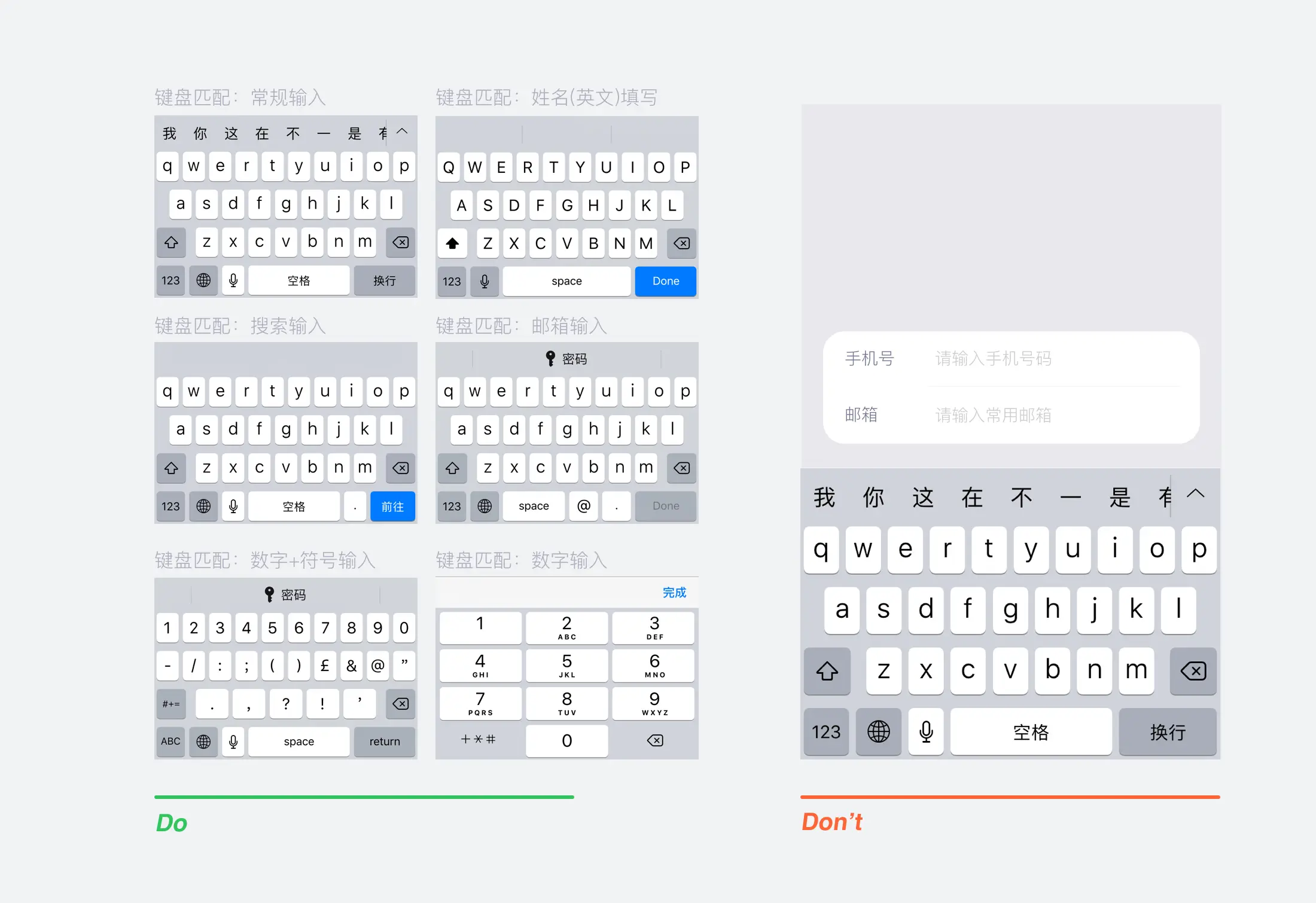 根据表单填写类型的不同,自动匹配键盘类型。如“中文输入”呼出中文键盘,“姓名(英文)”输入呼出锁定大写的英文键盘,“手机号码”输入呼出数字键盘……免去用户切换键盘操作的步骤。