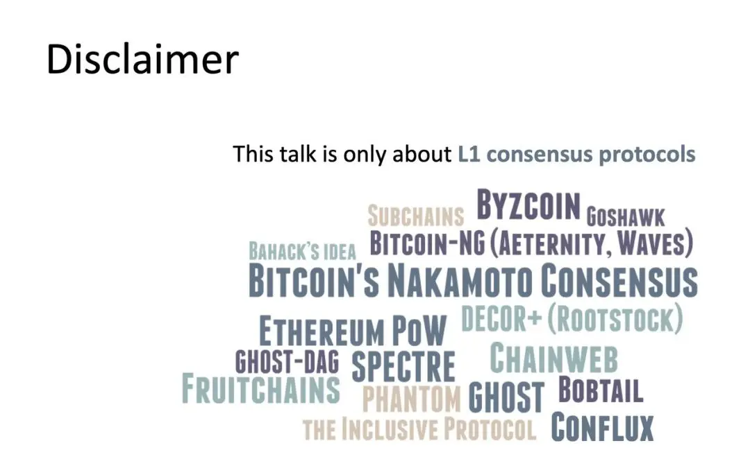 声明:本次分享内容仅着眼于 Layer 1 共识协议的分析,我将不会谈到 Lightning Network 这样的 Layer 2 方案。