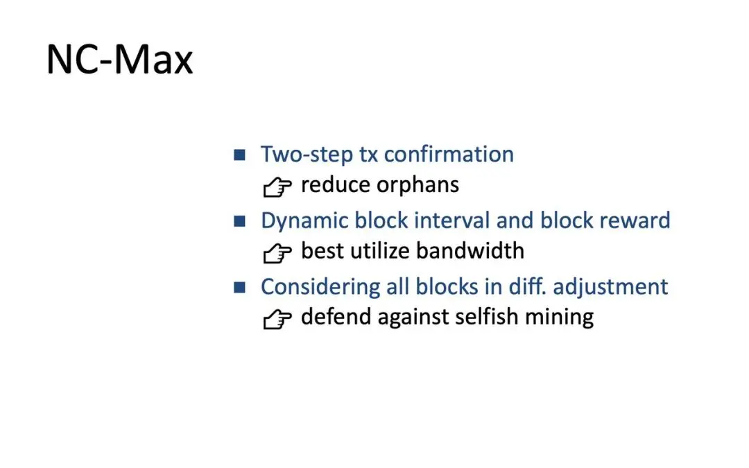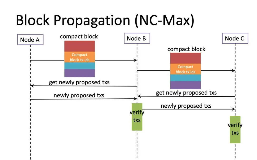 从上面的分析中看到,显然目前的吞吐量不能满足我们,因此,Nervos CKB 的共识协议 NC-Max 对 NC 做了一些改进: