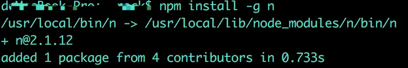 npm install -g n (注意不带sudo,我按照网上带sudo提示错误)