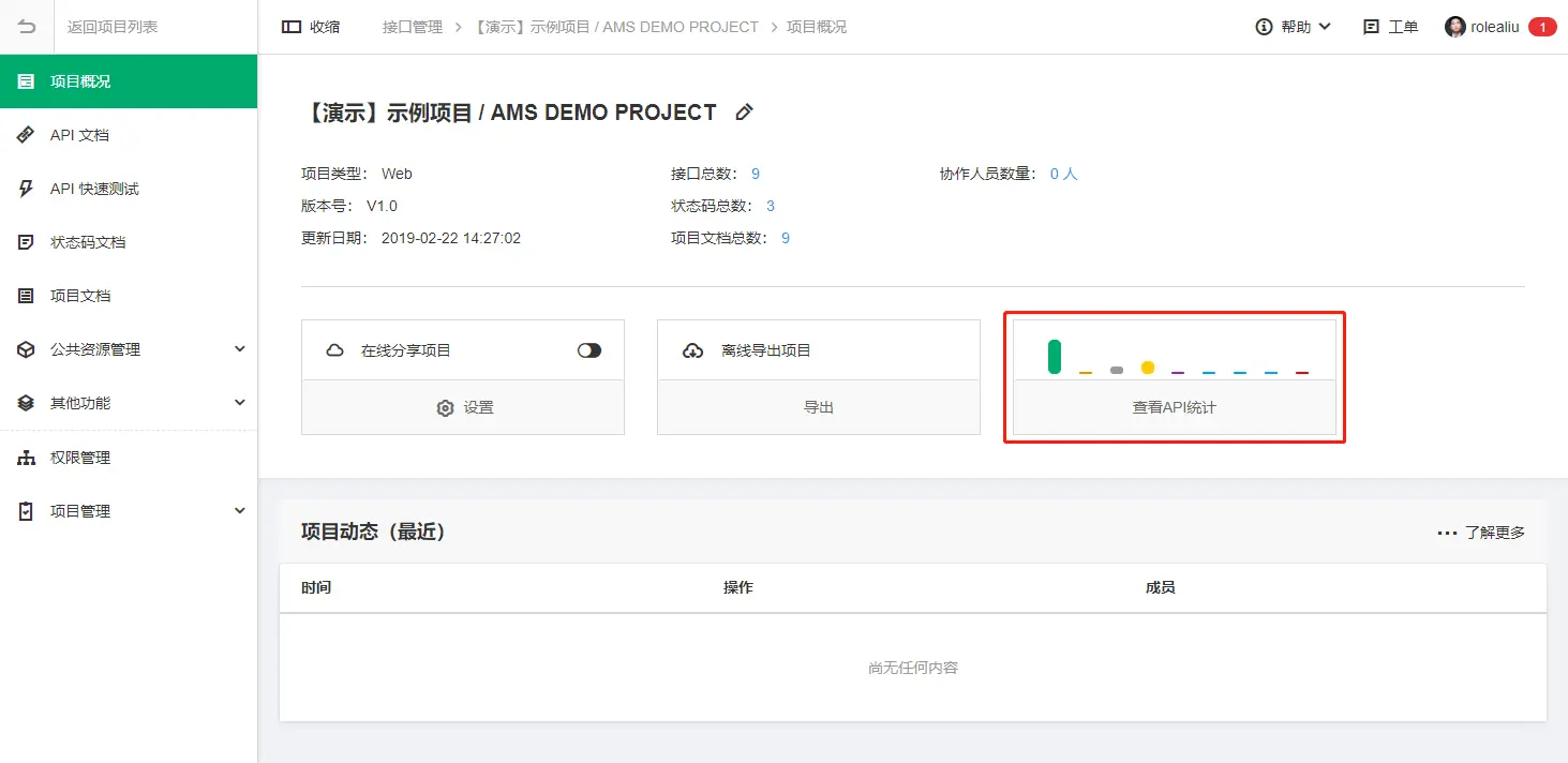 1.项目概况页加入API统计信息,方便了解项目内的API状态及其数量分布: