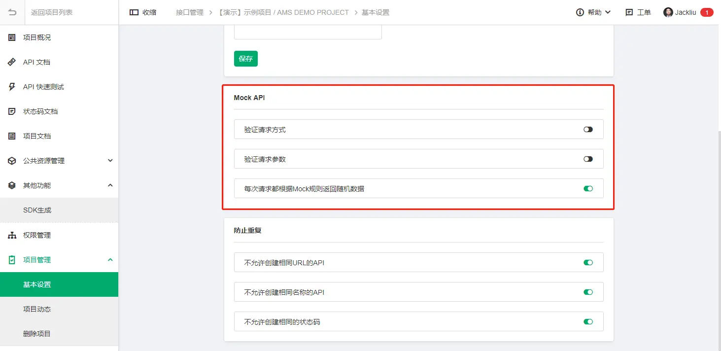5.API项目设置加入Mock API的设置选项:
