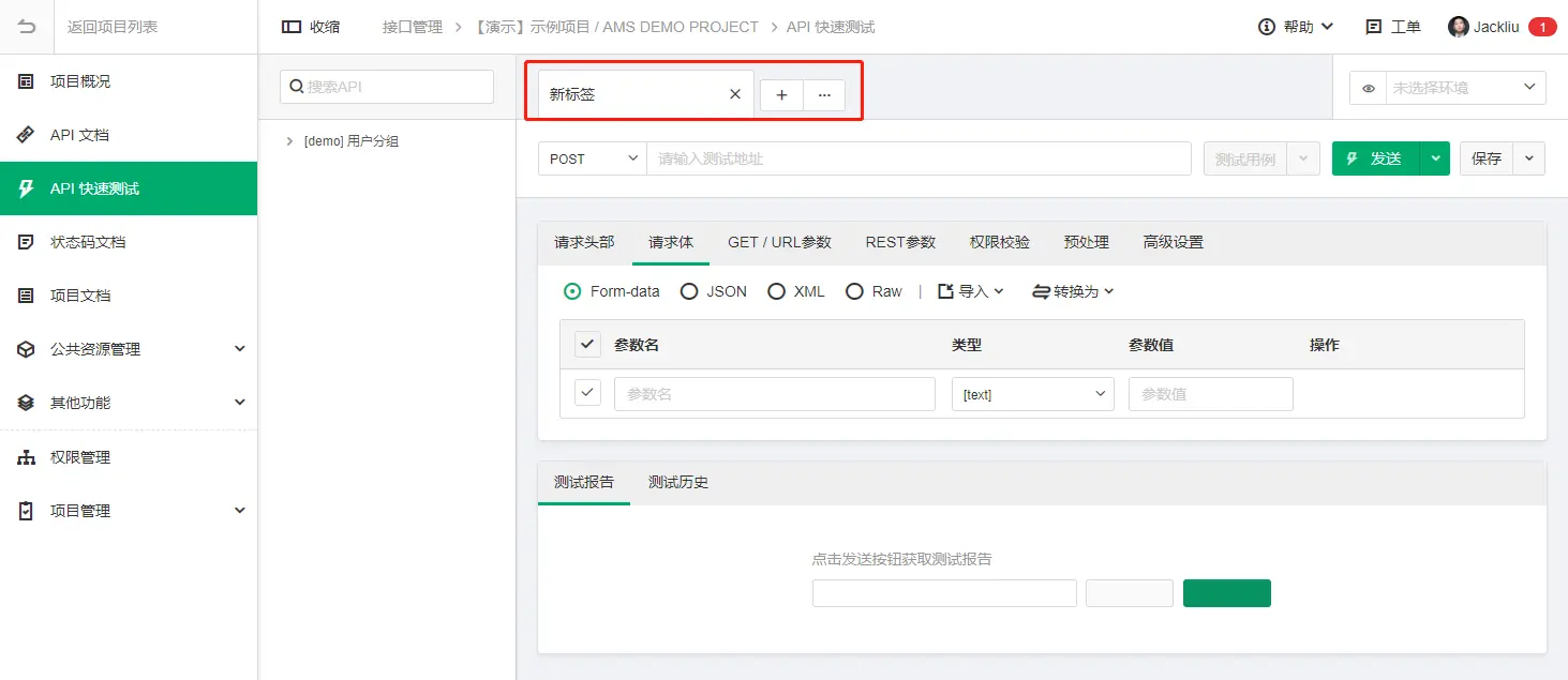 2.API快速测试加入Tab标签页,可以同时测试多个API: