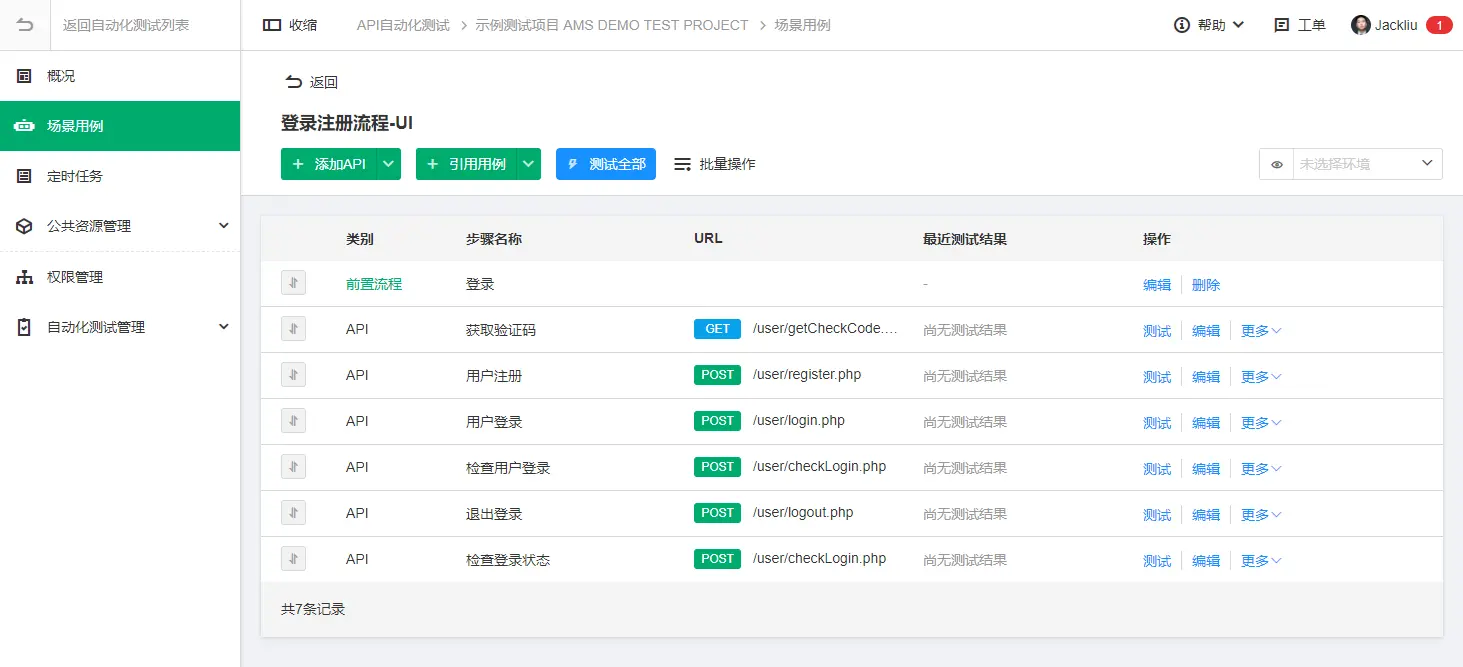 4.API自动化测试的前后置用例与普通用例在同一列表中显示: