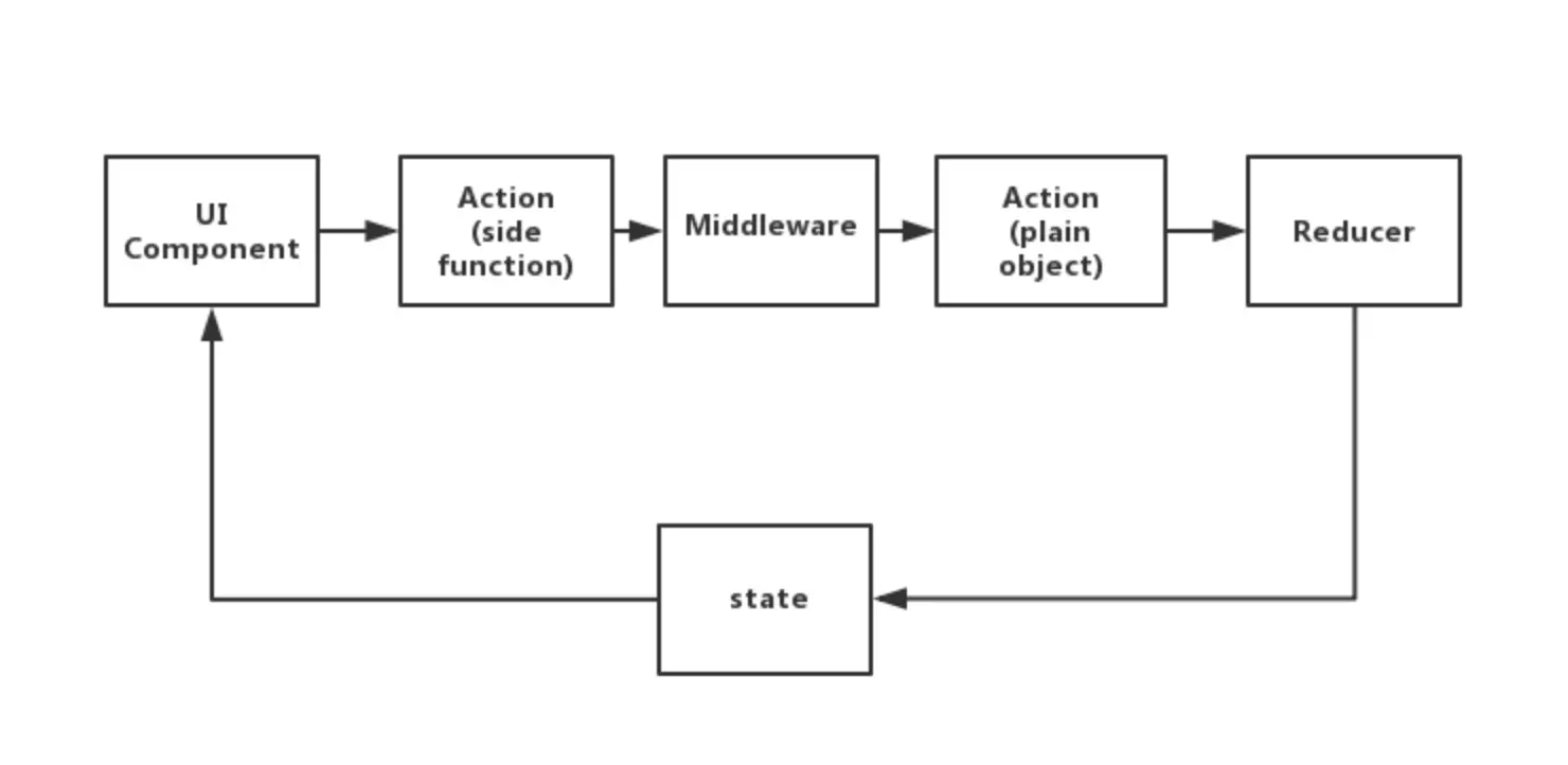 你可以利用 Redux middleware 来进行日志记录、创建崩溃报告、调用异步接口或者路由等等。redux + Middleware数据流: