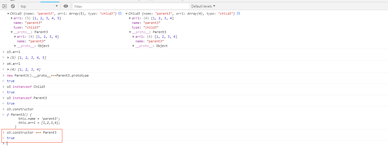 var o3 = new Child3(); // 这里o3实例应该是由`Child3`直接生成的实例。