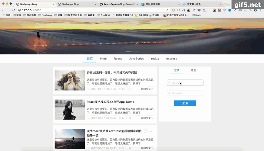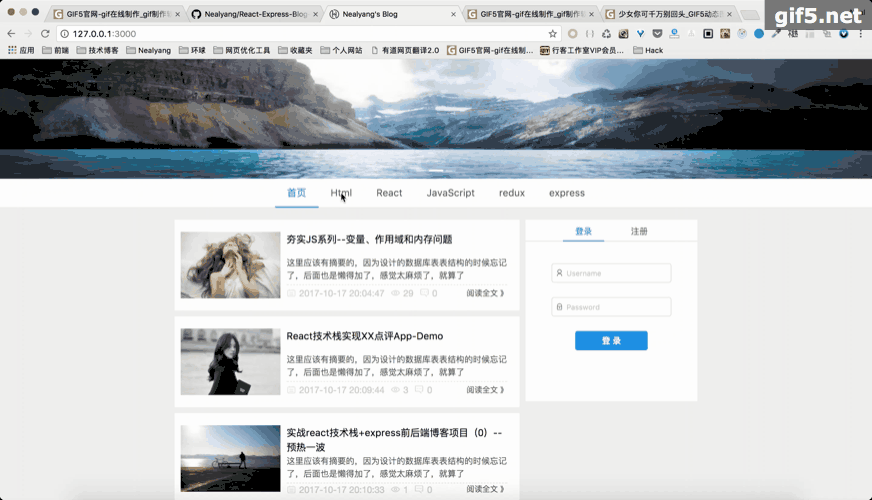 gitclonegit@github.com:Nealyang/React-Express-Blog-Demo.gitnpm inpm start