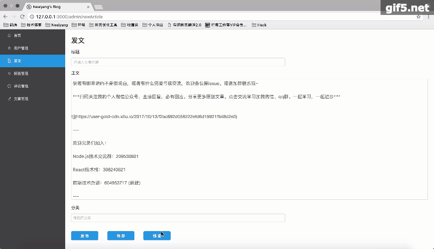 发文(支持MarkDown语法)