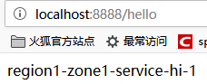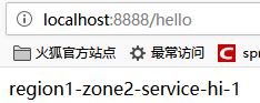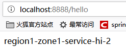 打开浏览器访问:http://ip:8888/hello,ip自行改成consumer服务的ip即可,连续访问这个url若干次,可以看到consumer调用的service的始终是zone1中的service-hi-1和service-hi-2,并且由于ribbon的默认负载均衡规则,service-hi-1和service-hi-2被轮询调用。