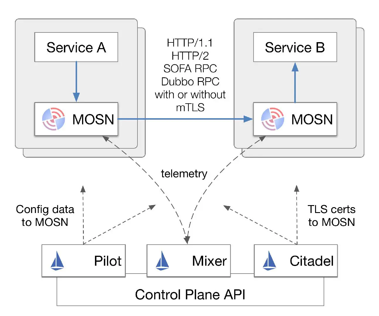 SOFAMesh 是基于 Istio 改进和扩展而来的 Service Mesh 大规模落地实践方案 。