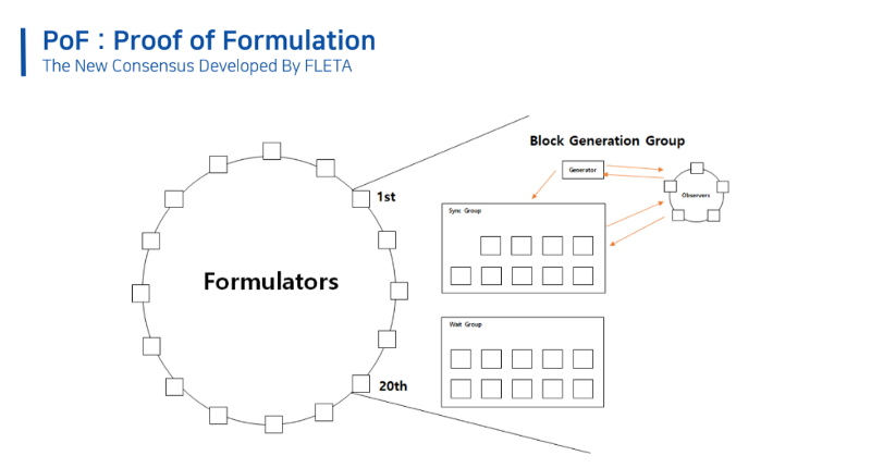 在配方证明(PoF)中,与现有的区块链平台相比,挖掘和块生成的方式不同。Formulator充当FLETA平台中的块生成器。Observers允许实时确认生成的块并防止双重花费。