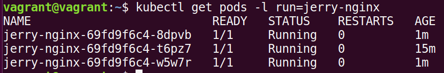 Available True MinimumReplicasAvailable Progressing True NewReplicaSetAvailable OldReplicaSets: NewReplicaSet: jerry-nginx-69fd9f6c4 (1/1 replicas created) Events: Type Reason Age From Message