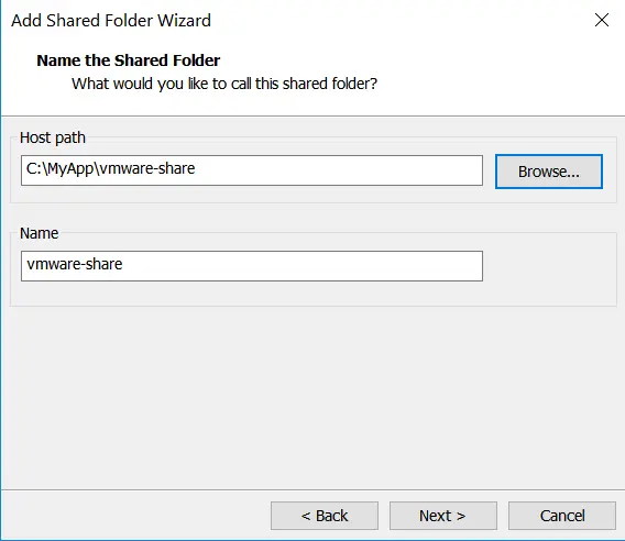 下图意思是将我宿主机Windows操作系统C盘下面的目录wmware-share作为共享文件夹,让虚拟机Ubuntu也能访问。