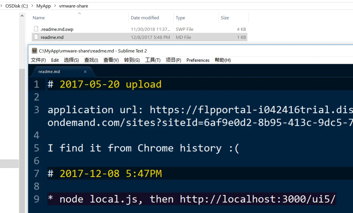 现在我在宿主机windows系统的wmware-share文件夹下面放一个readme.md: