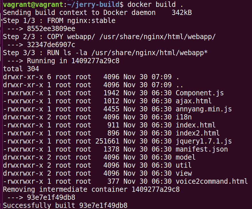 该命令成功得将包含了我们web应用的webapp文件夹内的所有文件打到nginx镜像内: