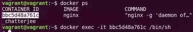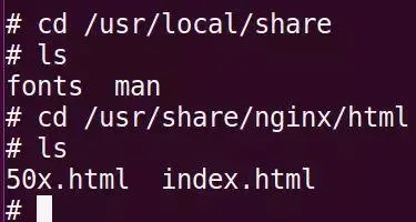 看到#提示符后,进入容器内部的目录:/usr/share/nginx/html