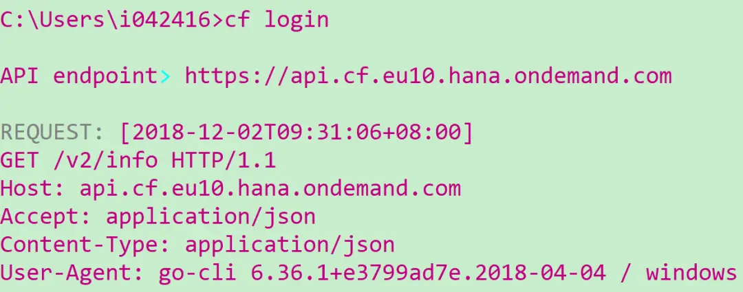 在CloudFoundry上部署应用的朋友们可以把docker login类比成cf login(下面是cf login的截图):
