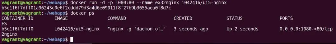 使用1080端口基于镜像i042416/ui5-nginx启动一个新的容器: