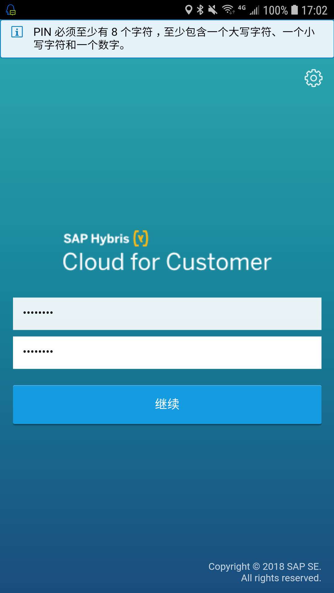 第一次启动App,设置一个初始化的pin code: