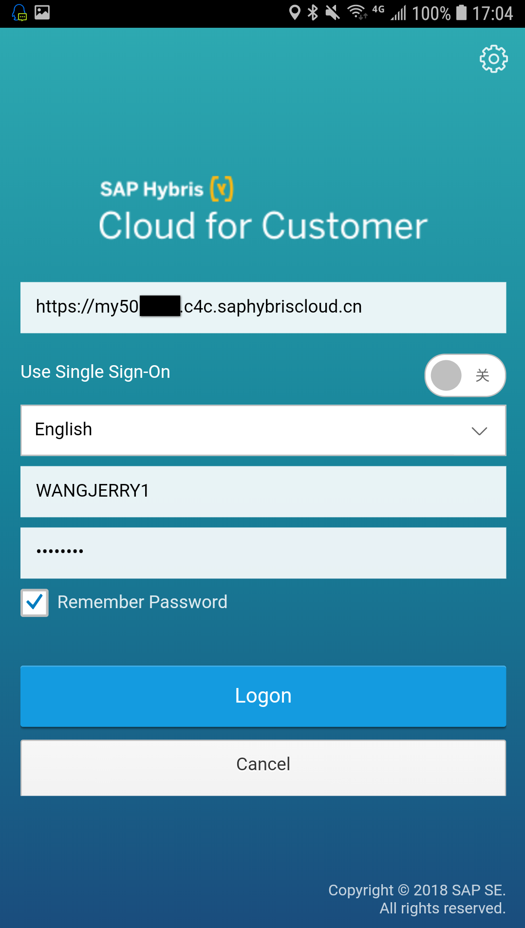 输入C4C tenant的url,用户名和密码:
