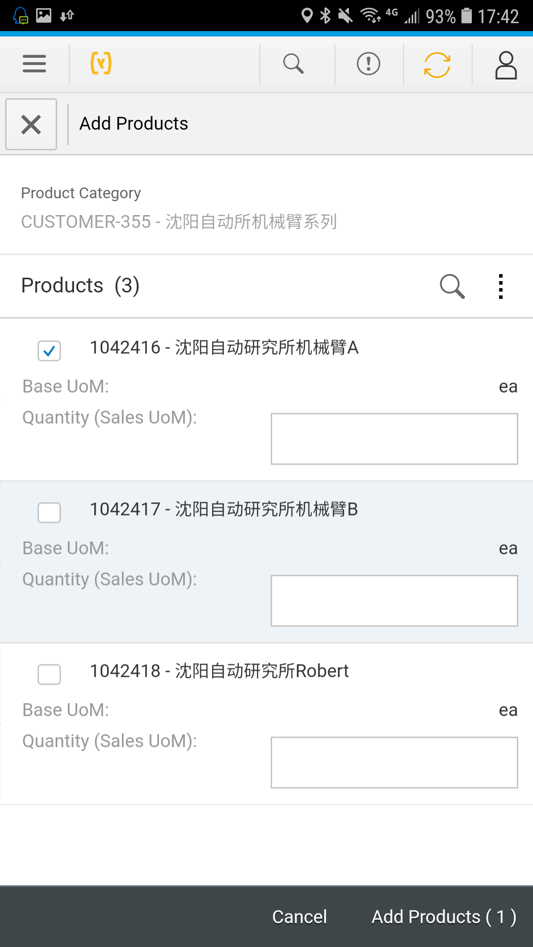 接下来是给Sales Order的行项目添加产品。点击按钮All Products: