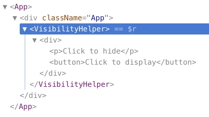 class VisibilityHelper extends React.Component { constructor(props) { super(props); this.state = { isDisplayed: defaultTo(props.initialState, false), }; this.hide = this.hide.bind(this); this.show = this.show.bind(this); } hide() { this.setState({isDisplayed: false}); } show() { this.setState({isDisplayed: true}); } render() { return this.props.children({ ...this.state, hide: this.hide, show: this.show, }); } } const App = () => ( <div className="App"> <VisibilityHelper> { ({isDisplayed, hide, show}) => ( <div> { isDisplayed && <p onClick={hide}>Click to hide</p> } <button onClick={show}>Click to display</button> </div> ) } </VisibilityHelper> </div> );- Hooks