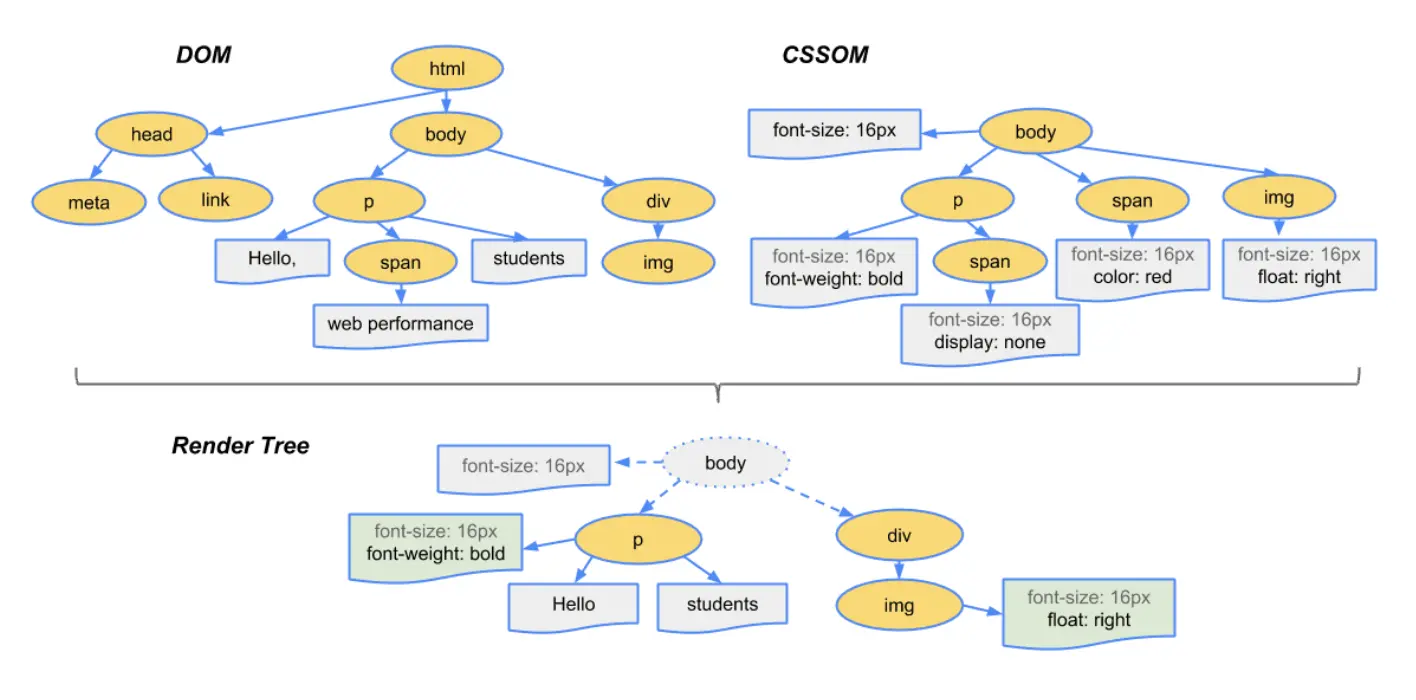 当我们生成 DOM 树和 CSSOM 树以后,就需要将这两棵树组合为渲染树