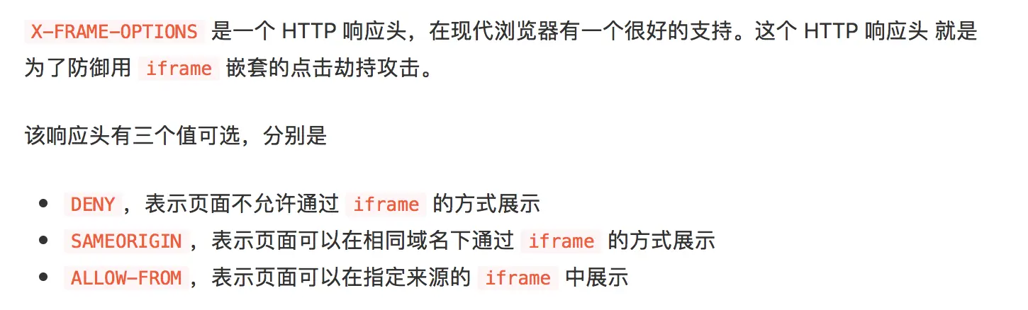 点击劫持是一种视觉欺骗的攻击手段。攻击者将需要攻击的网站通过 iframe 嵌套的方式嵌入自己的网页中,并将 iframe 设置为透明,在页面中透出一个按钮诱导用户点击。